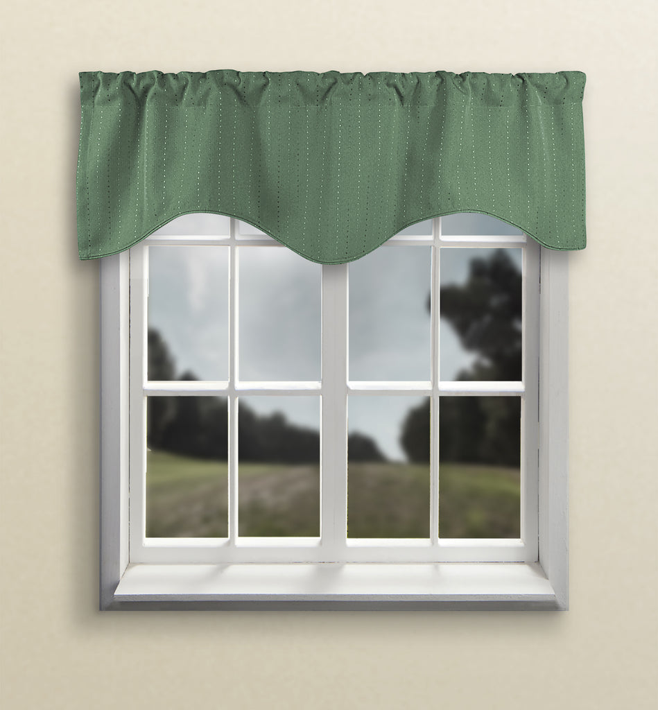The Grand Pointe valance curtain has a stylish M shape and a unique jacquard fabric texture. Accented with the vertical dots and lines, this valance adds both function and fashion to your windows.